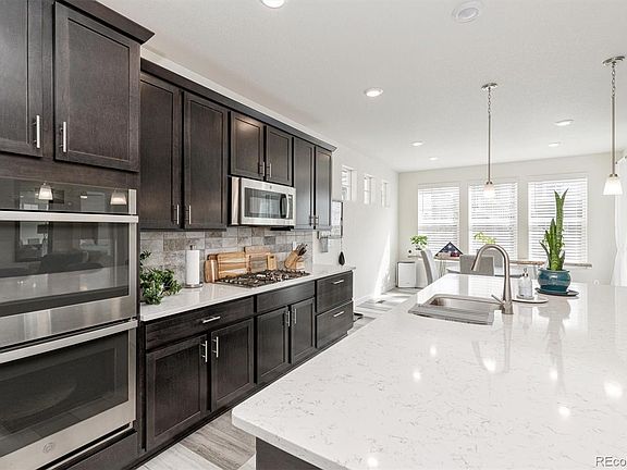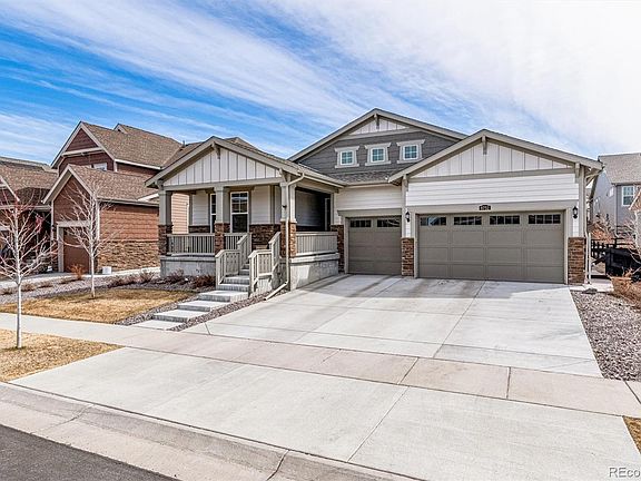 This three-year-old home in Inspiration features main-level living with three bedrooms, three bathrooms, an oversized three-car garage, and a huge laundry room. The extra-large primary suite attaches to a unique walk-in closet that also connects to the laundry room. Enjoy sunny days on the covered front porch (with a peek of the mountains!) or in the backyard complete with a partially covered extended deck, hot tub, and putting green. Solar panels provided by the builder - lease will be transferred to buyers. Upgrades include new luxury vinyl plank throughout main areas and bedrooms, extra blown-in insulation, and high-speed Cat 5 internet along with voice-enabled smart home features. The unfinished basement provides amazing storage and room for future expansion. The desirable neighborhood location is convenient to both the Southlands shopping/dining area and historic downtown Parker, and also provides easy access to E470 and the airport.