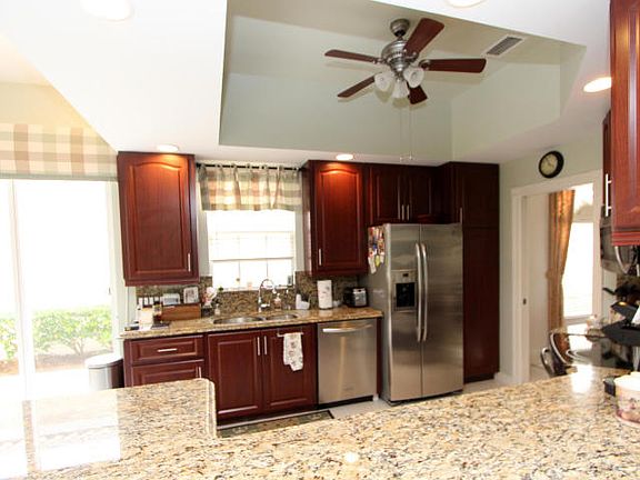 Stunning home with spectacular floor plan in gated Carlton Oaks! This development was built by legendary builder DiVosta. This floor plan boasts 3 bedrooms, 3 baths, 2 car garage, with a room for formal dining, den or office, a spacious great room and a kitchen loaded with beautiful granite and stainless steel appliances and a super nice sized granite snack bar, rich cabinetry. Enjoy Florida life style on your covered and screened lanai overlooking tropical preserved landscaping. The flooring is ceramic tile with carpet in bedrooms and the fans and lighting are all upgraded. This is a move in condition home - very immaculate. The community provides tennis courts, pool, clubhouse and a beautiful atmosphere. Hurry to see - too nice to last long on market.
