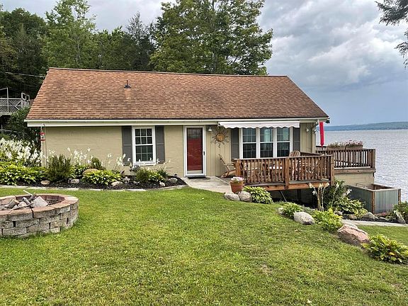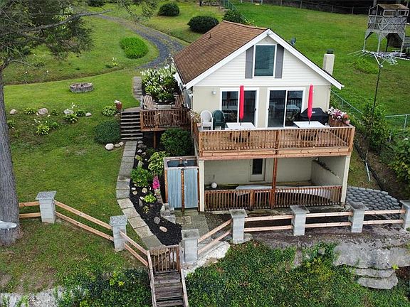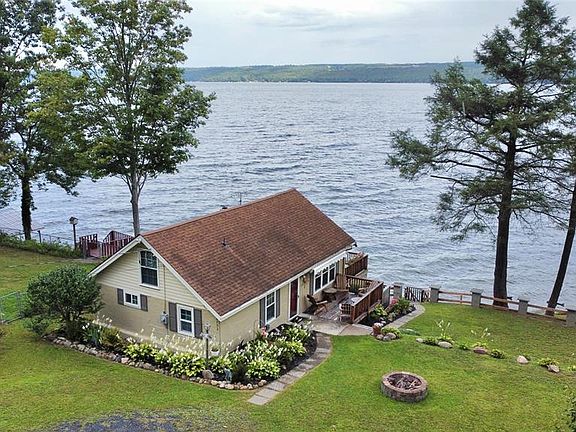 Beautiful 1.5 story cottage on Cayuga Lake. 2 bedrooms and extended jog off master with possibilities of becoming a 3rd bedroom. Easily sleeps 8 as it sits. The second bedroom loft has two double beds and room for more! Cathedral ceilings with exposed beams, Open floorplan with plenty of light, updated kitchen and bath, large 10x20 deck with Gorgeous views all around, 106 Feet of lake frontage, the 1/2 acre lot is fenced, side deck with awning, outdoor shower, bonus basement space for storage with the potential for more living space, covered patio area has great space for an outdoor kitchen overlooking the lake! 3 docks, boat lift included, boat and furnishings are negotiable. Home Has Newly replaced windows and deck. Enjoy the beautifully landscaped park-like yard fully fenced with gated driveway.