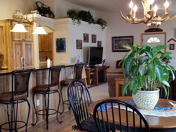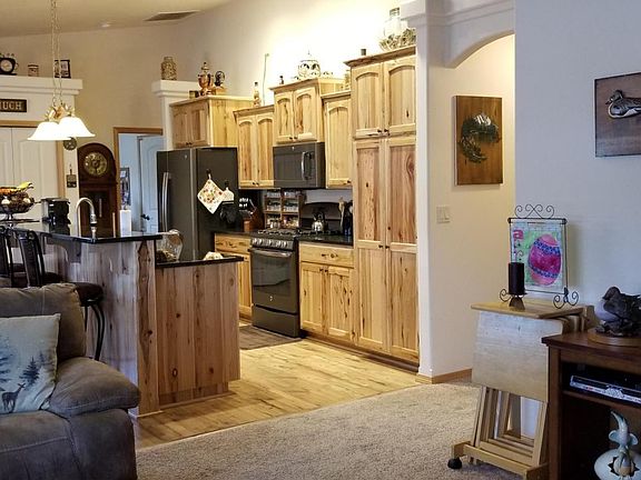 Almost new 55+ home w/tons of storage & phenominal mtn views. Great room design w/large windows, breakfast bar, triple pantries, pull-outs in beautiful rustic hickory cabinets, gas range, all kitchen appliances. Split bedroom design, all w/spacious walk-in closets. Master bedroom is huge w/large sitting or work area. Large laundry w/folding counter, cabinets & huge linen closet. Garage is officially 3 car, but 3rd stall is completely finished w/heat adding over 250SF, not included in the living space SF. Being used as a quilting room, but would be great for workshop, crafts, exercise or turn back into garage. Backyard has a covered & sun patios to enjoy breathtaking mtn views while listening to bubbling water feature, back yard is fully fenced & even has small pet door. Htd Drive & wifi.