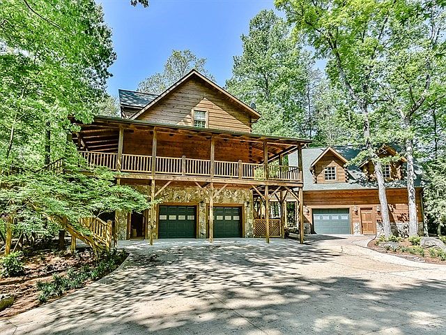 Unique cabin home with waterview! Main home has 2 car attached garage and large, rocking chair, wrap around porch. This property also has a guest loft- although there is no true bedroom; there is a kitchen, full bath, and living area with fireplace. The perfect getaway spot, she-shed, man-cave, etc! 2 story great room gets a ton of natural light, featuring floor to ceiling windows. Gourmet kitchen with breakfast bar in center island, and brand new barely used matte black stainless appliances. Spacious master suite upstairs with vaulted ceilings, walk in closet. Master Bath has large tiled walk in shower with several heads, jetted tub, and grainte vanity with dual sinks. Huge loft upstairs. Secondary bedrooms on main level with jack and jill bath. Relax on the stone patio near the pond or the firepit, as dinner cooks on the built-in grill and your drinks cool in the outdoor fridge.