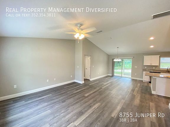 Walk inside this open floor plan and you can imagine get togethers here in Kitchen and living areas, separate laundry room. The all wood Shaker cabinets are soft close with dressier brushed nickel cabinet pulls. Granite counters and stainless steel appliances compliment your kitchen with a large kitchen island. Enjoy the Luxury Vinyl Plank flooring & ceiling fans in all rooms. Large Master Bedroom. Both bathrooms feature Shaker Cabinets/granite counters with a walk-in shower in the master bedroom and gust bath has a steel tub/shower combo with nice tiled walls. 2'' Blinds on windows, and an automated garage door opener included. Large screened in Lanai.