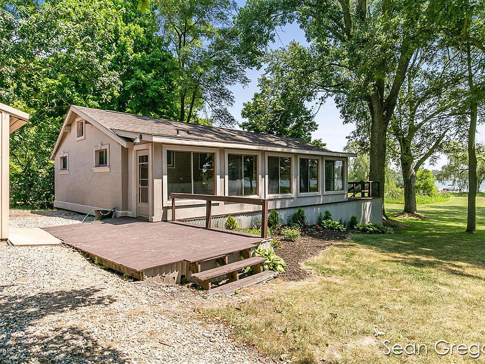 Don't miss this wonderful lakefront getaway on all sports Campau Lake. Conveniently located close to many conveniences yet far removed from the hustle and bustle. Would be a great year round home on the lake or a nice cottage get-away. Home features an open layout with the newly renovated kitchen (granite counters, stainless appliances, new flooring, etc.) dining area and great room all overlooking a wall of windows facing the lake. There are two bedrooms, a sleeping loft, a new bath and a 3season room that runs the length of the home. Almost 3/4 acre lot with 92 feet of sandy frontage on the lake and a 4 car garage and unfinished walkout great for work shop and storage.