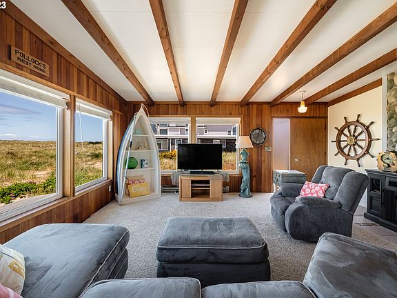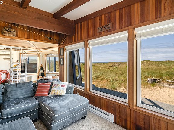 Oceanfront charm meets architectural marvel! This spacious home offers comfort and convenience with an ocean view greeting you the second you step through the front door. Vaulted ceilings, exposed beams and original design features make this home a stand-out. Enjoy the sunset from inside, or head up to the top of a custom built lighthouse for full, panoramic balcony views of Neahkahnie Mountain, grassy dunes and sandy beaches. You don't want to miss this extraordinary opportunity to own a true Manzanita landmark!