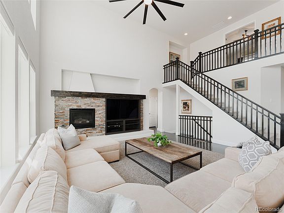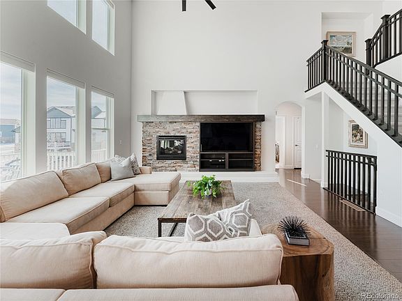 - Description: The Architectural Allure Of The Twenty-Foot Ceiling Is Heightened By Rows Of Expansive Windows Stretching Vertically From The Floor, Drawing You Into The Great Room Where Warmth And Light Elegantly Pirouette Through The Spacious Open Area. Anchored By A Stone Fireplace And Built-Ins With A Dark Hardwood Mantle, This Space Invites You To Kick Off Your Shoes And Embrace Relaxation. Through A Series Of Windows, A Picturesque View Of Seasonally Vibrant Landscaping Seamlessly Blends Nature's Beauty With Your Living Space.