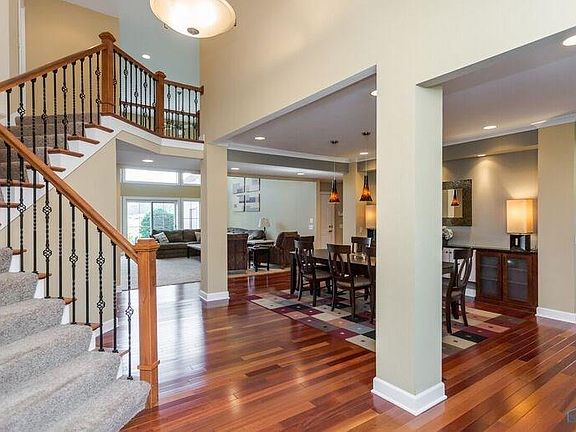 Amazing One Owner Custom home on lovely corner lot. Unique floor plan with attention to detail throughout, Impressive 2 story foyer with Brazilian Cherry wood floors opens to formal dining room. Soaring ceiling in great room with built ins & Lots of natural sunlight. Spectacular Island kitchen w/ rich cherry & maple wood cabinetry, & Brazilian Cherry floor Mudroom with lockers. Finished BSMT!