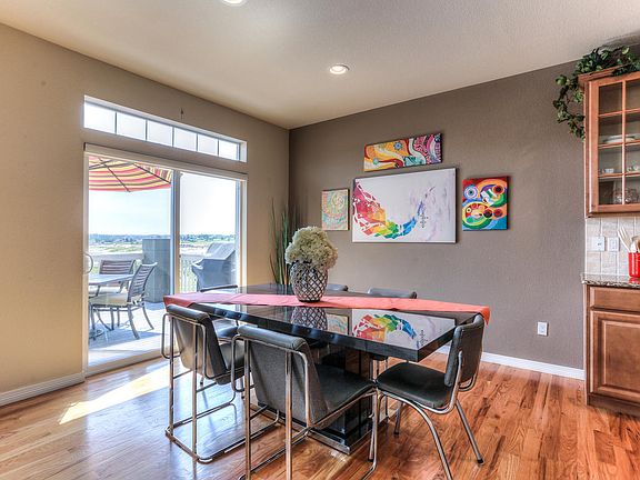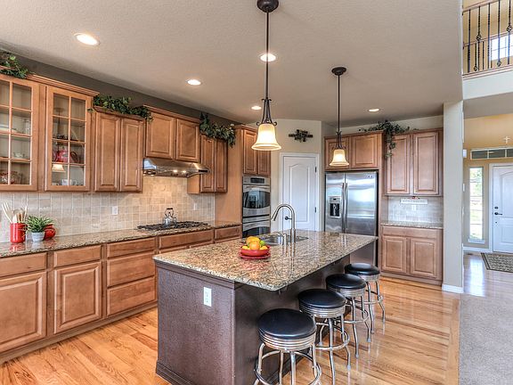 Fantastic Rocking Horse 2-Story! The gourmet eat-in kitchen boasts toffee maple cabinets with crown molding, stainless steel appliances, slab granite and large island which will put any cook at ease. The soaring two-story ceiling, gas fireplace and wall of windows make the great room a favorite. Main floor study with adjoining full bath could be a possible 5th bedroom. Relax in the luxurious master suite with vaulted ceilings, walk-in closet and five piece bath featuring a large soaking tub. The professionally landscaped yard with deck, patio and HUGE pine trees is perfect for any family. Tons of upgrades, wrought iron balusters, light & bright open floor plan, main floor laundry with sink, formal dining room, unfinished walk-out basement and much more! Easy access to shopping, e-470, DTC, DIA, parks, biking and hiking trails. Aurora address, Douglas county schools.
