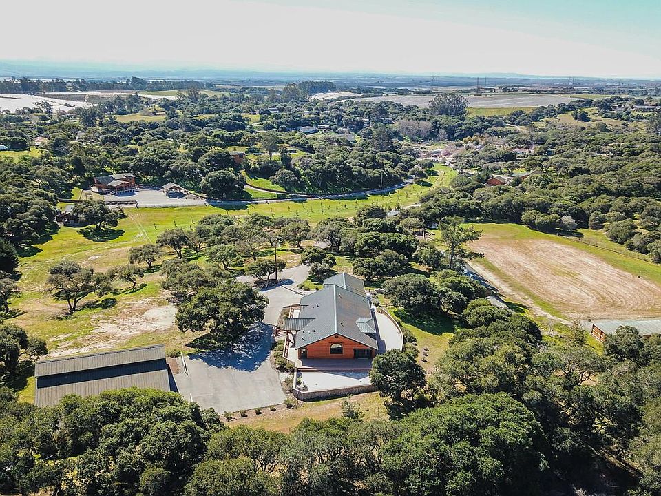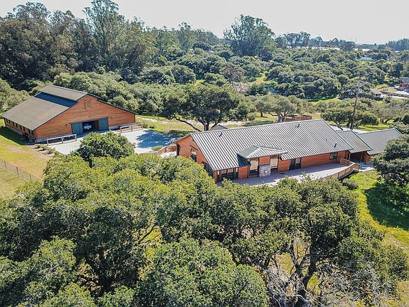 Lovely 10 acre private estate perfectly situated to maximize the gorgeous sunrise and sunsets on the Central Coast of California. Main home features three large bedrooms (with room to add a 4th) and two updated bathrooms, attached three car garage, custom kitchen, massive stone fireplace with gas insert, updated bathrooms and hand hewn hardwood floors, wrap around deck, pizza oven and outdoor kitchen, Guest home has lovely hardwood floors, stone fireplace with gas insert, kitchenette, 1 large bedroom that could easily be 2, covered patio, indoor laundry, private driveway, separate meter and back up generator. MD HORSE BARN (2) 12 x 24 stalls & (2) 24x24 stalls with tack room & loft storage. MD SHOP: with tall roll up door;24 x 36 , MD STORAGE/SHOP: 16' x 100' Shop/storage building with two roll up doors and 8 storage doors, Equipment barn 24 x 48, outdoor gazebo, Huge flat arena or play area, located adjacent to 500 acres - Manzanita Park. Within 25 miles of Monterey & Santa Cruz.