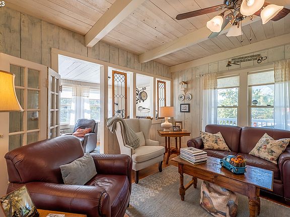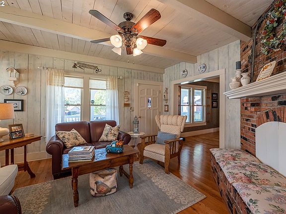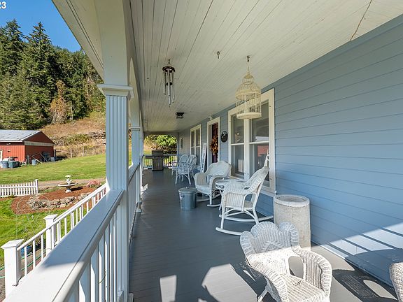 Umpqua home on 80 acres with timber, farmland, and water rights. Home features 6 beds, 3 full baths, + kitchen & laundry room on 2 levels. Ground level access to the daylight basement. Shop and 2 barns. Pear and apple trees. Raised garden beds. DFN high speed internet. River access for fishing and swimming.