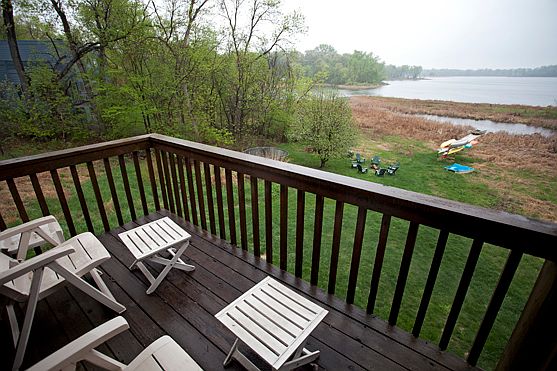 Rare find! Over .89 acres on the N end of Bush Lake, one of the clearest & cleanest in the area! Situated right on the lake to give you unparalleled access & uninterrupted views. Lot size and location gives secluded privacy but w/a quick commute to the city. Home has been meticulously updated & cared for w/modern open floor plan, hardwood flrs thru-out main level, private master suite w/ deck + FP, & 2 more real stone surround wood burn FP. Garage space is 7+ cars & cold storage for water toys!