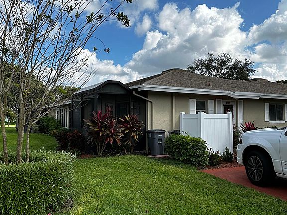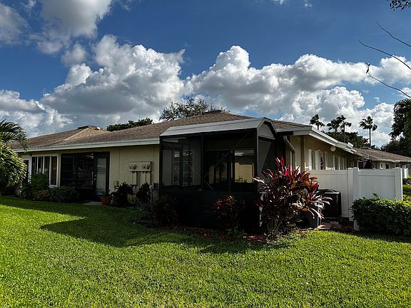 Beautiful and remodeled 2-2 villa, this end unit has great living space and plenty of storage.lovely private 55+ gated community, beautiful landscape, lakes and sidewalks along the boulevard.Big master bedroom with walk in closet and bathroom, sliding door to the enclose porch (can be used as an office or extra room), all with garden views. 2 car spaces right outside the front door.all new appliances (microwave, dishwasher, stove and refrigerator) 3 months old.new doors, and mirror closet doors. entrance code lock. New vinyl flooring, New a/c unit.most important is the roof, the assessment for a new roof has been paid in full for the seller.Guardhouse at each of the two entrances,8 tennis courts, 4 handball, basketball hoop and olympic pools, gym, library and entertainment ro