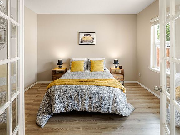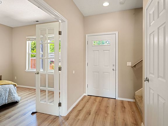 Price improvement!This Veneta home offers the perfect blend of comfort and functionality, including 4 bedrooms and 2.5 baths. You will find fresh updates, including new countertops and all new flooring! The open-concept floor plan seamlessly connects the living room (including a cozy fireplace), dining area, and kitchen area. The kitchen features maple cabinets, gorgeous new countertops, stainless-steel appliances, and a pantry. The downstairs bedroom has french doors and offers so much versatility. This room can be used as an additional bedroom, home office, or playroom. The powder room and the laundry room (including extra storage) are also located downstairs. Upstairs, you'll find 3 bedrooms and 2 bathrooms. The primary bedroom features french doors, a private bathroom with dual sinks, and a spacious walk-in closet. Outside, you'll find a nicely sized backyard and a deck, so you can enjoy afternoons in the shade. Additionally, there is room for a small RV or a boat. Veneta is a great community located just outside of Eugene with easy access to nature trails, parks, and recreational opportunities.