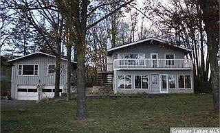 FABULOUS one-of-a-kind lake parcel setting! Enjoy 317 ft of shoreline with level elevation, a nice sand lake bottom, all day sun & 180 degree panoramic lake views at this 4BR-2BA lake home with cathedral ceilings, 2 wood-burning fireplaces, newer 3-season lakeside sun porch with a 28 ft deck above while taking advantage of the 24x24 detached garage with a 2BR year-round T & G knotty pine guest suite above, 40x80 pole building with heated flooring & great end-of-the-road privacy on 1.2 acres!