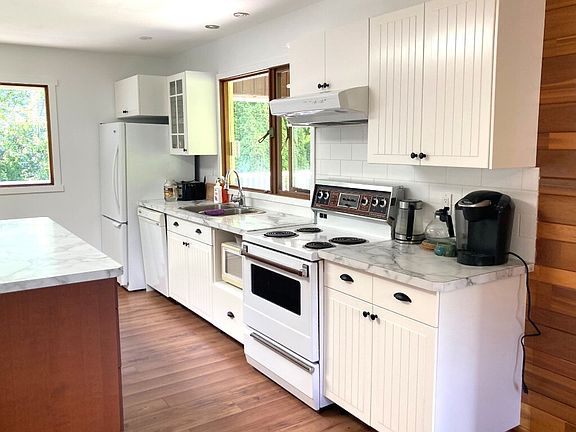 This versatile property offers the perfect escape whether you're looking for a full-time home, seasonal retreat, or a potential mortgage helper with its summer kitchen. Inside, you'll find stylish updates throughout: fresh paint, new cabinetry, and modern finishes in both bathrooms. The basement bathroom even features a heated floor for added comfort. Step from the dining room onto a spacious, covered deck with new finishing, an ideal spot to enjoy your morning coffee or host evening BBQs with friends. The home is filled with natural light thanks to three skylights, and easy-care hard surface flooring. Cozy up around the wood-burning fireplace in the living room, or re-install a wood stove in the basement family room. The attached single garage includes a full-length workbench and a separate storage room, perfect for tools, gear, or summer toys. Adams Lake Estates is a gated bare-land strata tucked away from the main road making it a safe location for kids, and pets. The community offers affordable lakeside living with an annual fee of just $750. Residents enjoy exclusive access to a shared waterfront paradise: a sandy beach, grassy shoreline, play area, protected swimming zone, dock, and boat launch just steps from your door. Home being sold turn key makes this an easy move; just bring your paddle board & sunglasses to start living the lifestyle you’ve been dreaming of.