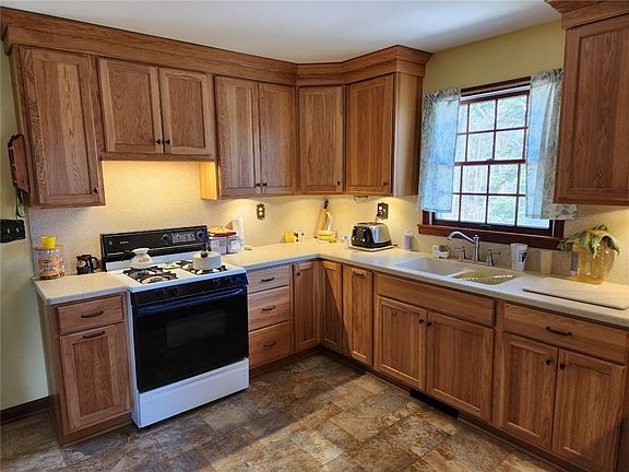 Escape to the country & enjoy greenspace & the great outdoors! Roof (2016), Kitchen (2017), HWT (2019), Boiler (2021). Nice lower level workshop. Enjoy quiet summer evenings grilling out or watching wildlife. Meal time is a breeze with large kitchen & spacious dining room. Beautiful view!