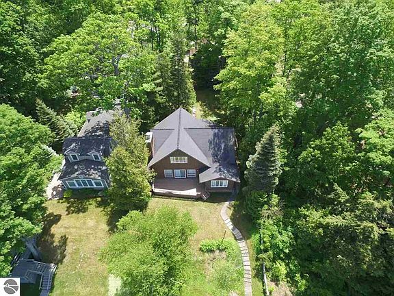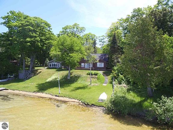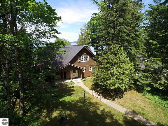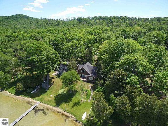 Mother Nature on display - glorious sunsets, sparkling blue water, panoramic Alligator Hill views all on Big Glen Lake's coveted eastern shore. Enjoy warm sunny afternoons on the lakeside deck, camp fires at the water's edge & ever changing water views from the living room/dining room, kitchen & bedrooms. The 2,241 sq. ft. beautifully maintained home is 'move-in' ready w/four spacious bedrooms & 2½ baths. Loads of storage in each bedroom as well as the basement/office, detached 2 car garage w/storage above & a work shop too. Walking distance to Burdickville Market, LaBécasse & Funistrada restaurants. A Glen Lake gem to be treasured for generations!