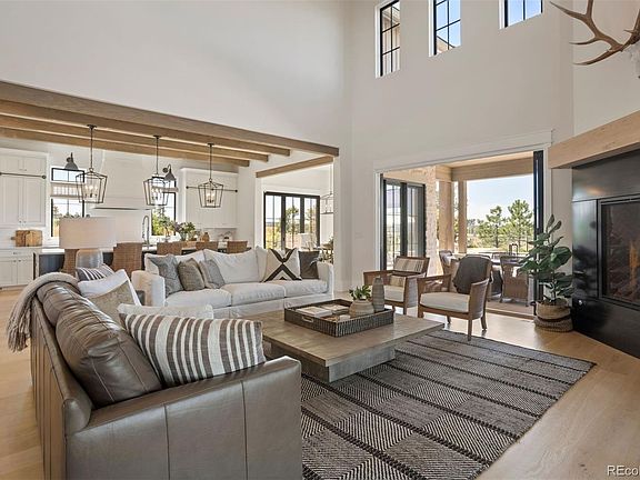 Beyond the pinnacle of luxury — a jewel in the crown of Colorado Golf Club. From the grand porte-cochere and circular driveway to the spectacular saltwater pool and expansive deck areas, every element of this home reflects modern farmhouse sophistication and unparalleled comfort. Architecturally exquisite and surrounded by breathtaking views ofPikes Peak and the Rocky Mountains, this custom home epitomizes quality and design excellence. The property includes a guest house with main-floor living, a beautiful kitchen, bedroom, bathroom, and private garage—ideal for guests or extended family. The great room features 22' ceilings with natural wood beams, an oversized fireplace with custom metal work, and two folding doors that open to the covered patio. The kitchen is a chef’s dream, featuring a massive island with a quartzite countertop and Thermador® appliances. The adjacent eating nook offers views of the pool and Pikes Peak, while the spacious walk-in pantry and coffee bar provide ample storage and convenience. The primary suite features a stone fireplace, walk-out to the patio, and a spa-like bath. The suite also includes a large walk-in closet, with custom cabinetry and is attached to the laundry room. Upstairs, three secondary bedrooms offer similar levels of comfort and style. Designed for the hustle of everyday life, the spacious mudroom offers style and organization for every busy house hold. Downstairs, the walk-out lower level provides a versatile rec room, featuring a well-appointed wet bar, game table areas, and ample storage, ensuring practicality and comfort. The centerpiece of outdoor living is the saltwater, offering a resort-like experience. Framed by unparalleled mountain views, the spa, expansive pool deck, and outdoor fire pit create the perfect setting for relaxation and entertainment. With its blend of exceptional indoor and outdoor amenities, this home offers an unparalleled living experience within the prestigious Colorado Golf Club.