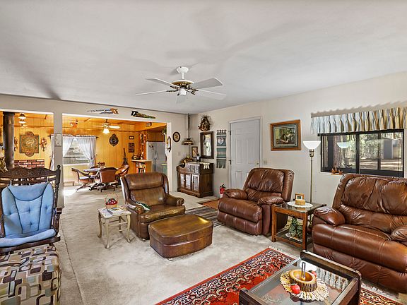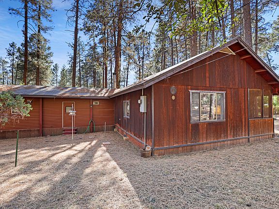 Tall pines abound on this 0.33AC property! Combination 1963 trailer with site built add on, is 2BRD/1BA, 1106 SF. Large living area is the addition (24x24) and the home has a wood stove, gas furnace and ceiling fans for cooling. Kitchen is small and the refrigerator is included. Covered, screened in porch and shed. Home is being sold turn-key! Home must be sold cash only due to the age of the mobile home. Home is sold as-is.