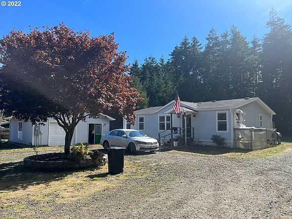 Beautiful property on 1.25 acres with 1999 built 3 bd / 2 bth manufactured home located South of Bandon. Warm and toasty location with mature fruit trees and raised beds for your garden off of the deck. Detached garage / bonus room has 1 bay for your vehicle and lots of room for storage. Garden shed for your tools, bbq pit and RV pad with running water. Perfect property and location to call home on the beautiful Oregon Coast!