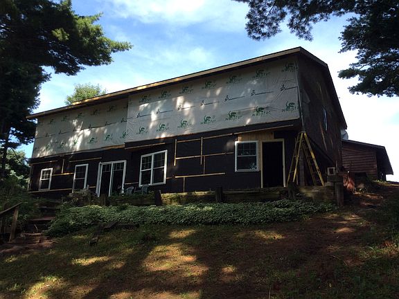 This is a new home on Pokegema Lake, still under construction...buy now and finish to your own liking. This home is located on a dead-end street in an area of nice homes. There is a 26x28 detached garage with door opener, concrete driveway, well, septic and lawn. Also, there is a 36' dock and storage shed. The new house is framed up and shingled. The lower walkout level has a living room, kitchenette, full bath, 2 or 3 bedrooms, shop. We are still working on it, but it will soon be ready for occupancy and could be lived in while you are finishing the upper level.