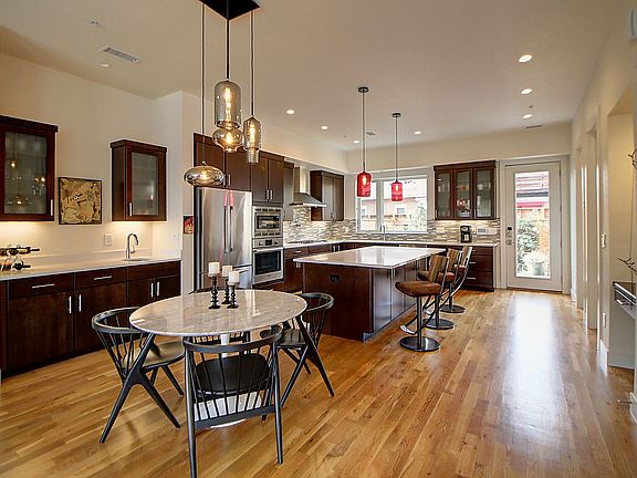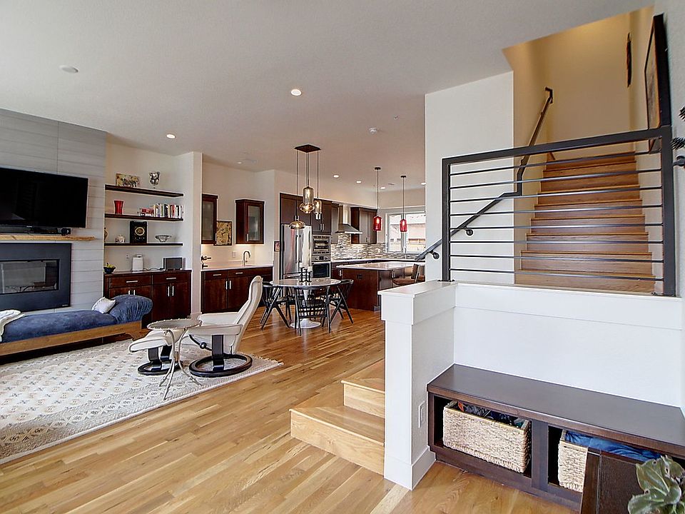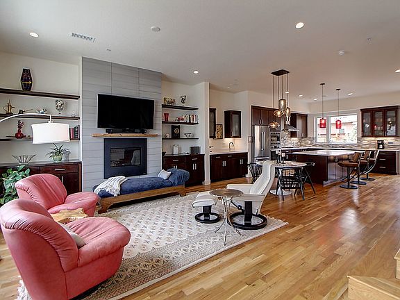 Stunning 3 bedroom, 4 bath tri-level with incredible views. White oak floors and large windows compliment the spacious layout. Modern kitchen equipped with a walk-in pantry, large island with bar seating, slab countertops, gas range stove, stainless steel appliances and a decorative tile backsplash. Relax in your master suite with walk-in closet and private 5-piece bathroom with a standalone tub and heated flooring. Entertain in the family room upstairs featuring a fireplace, wet bar and surround sound or step out onto the private rooftop patio with outdoor fireplace and a maintenance free deck. Nest thermostat, outdoor gas hookup, fenced yard, oversized 2-car garage, whole house humidifier, electric air purifier and much much more. This is a must see. Call now to schedule your private showing.