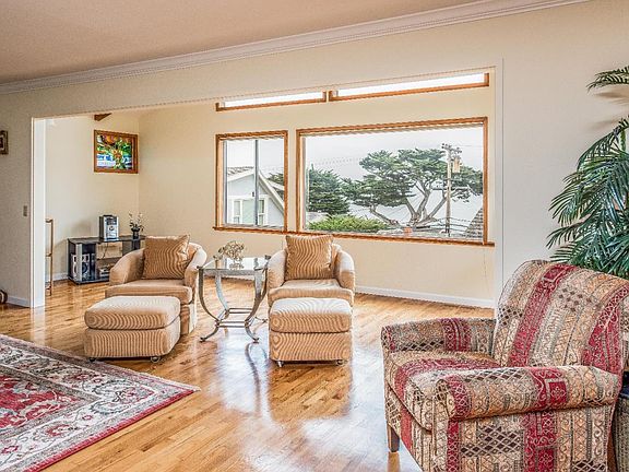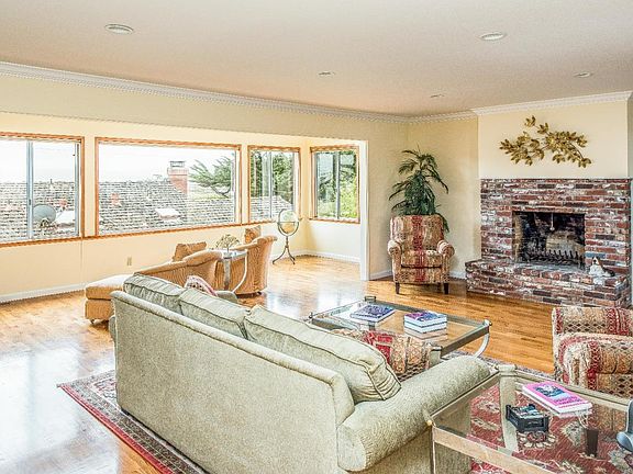 Enjoy amazing views of Lovers Point, the Monterey Bay and sparkling city lights from this 3 bedroom, 3 bath charmer. Located only a block from the ocean and recreation trail, this approx. 2,600 sq. ft. home features a flexible floor plan, large open living room with brick fireplace and sitting area, a cozy kitchen and dining area, sun room, master bedroom suite, main floor family room and a two-car garage.