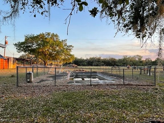 Charming fixer upper on 10+/- acres on Jack's Branch. This house was well-loved for many years and features a spacious master bedroom with two closets, laundry room, large galley kitchen, and generous Florida room overlooking the back yard. The yard is full of mature oaks and the entire property is fenced, pasture is divided and is perfect for cows and horses. Small pool in need of TLC in the front yard, plus metal building with large concrete slab (needs a roof) and a chicken coop in the back yard. Approximately 25 minutes from Fort Myers and 15 minutes from LaBelle, it's conveniently located while still being tranquil as it's bordered by Jack's Branch to the south and a large orange grove to the east. Cattle do not convey. A cattle lease is in place, lessee is interested in continuing lease if convenient for buyers. Additonal photos of house will be uploaded soon.