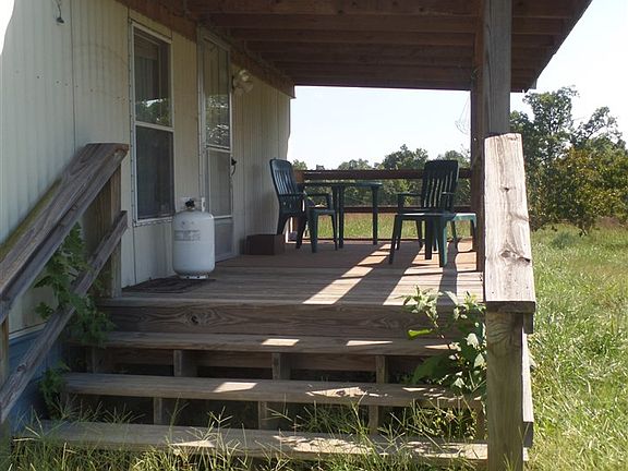 Nice 2 bedroom singlewide is the perfect retreat. 8 acres with beautiful views! Close (1.6 miles to boat ramp)fishing. All eight acres are fenced. Huge detached garage with wing outs that can be used as carports. Detached garage has workshop, back room can be bedroom, and office area & 1/2 bath. (Property was used as pasture land).