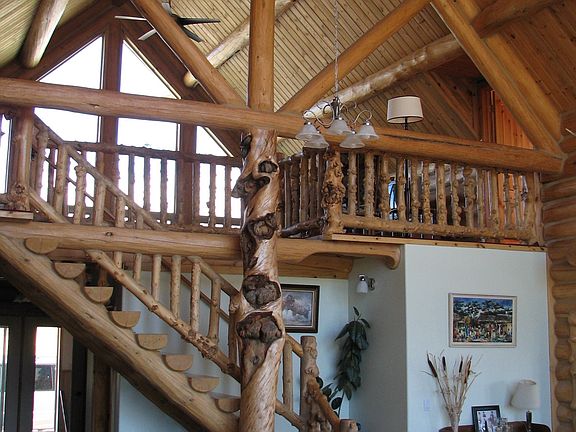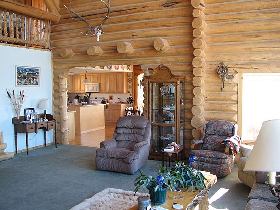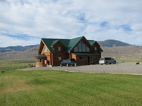 Incredible views from every angle of this magnificent hand crafted log home. You can see the view of the Lemhi River for miles and Hwy 28 running out towards Leadore, as well as the whole valley below and the Bitterroot Mountains view on the back side of home. Borders BLM on the East and Eagle Valley Ranch on other side. 30 ft. ceilings in living room with all window view. Large dining area with bay windows in large semi-circle off of kitchen. The kitchen and dining area feature Kahr's Swedish wood laminate flooring throughout. Each bedroom has its own bath and walk-in closet. There is a half bath in the beautiful foyer entry. Burl wood custom designed staircase and burl wood custom interior arches in main living area. There is a large pantry and laundry room too. hearthstone soapstone Wood stove on rock hearth. Also has toyo diesel heater . A must see home! Covered entry way / fire wood storage. Large deck wraps around one side house.