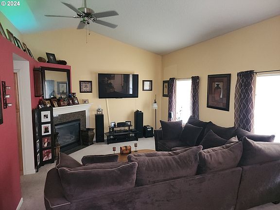 This nice 3-bedroom, 2-bathroom residence boasts an inviting open floor plan, perfect for both entertaining and everyday living. The moment you step inside, you'll be captivated by the vaulted ceilings that create a sense of grandeur, and the cozy gas fireplace that adds warmth and ambiance to the living area.The kitchen seamlessly flows into the dining and living spaces, making it ideal for hosting gatherings. The primary bedroom is a true retreat, featuring a walk-in closet and an ensuite bathroom designed for relaxation.For those who appreciate outdoor living, the backyard is a private oasis. Enjoy your mornings or evenings on the covered patio, complete with a serene water feature that provides a peaceful backdrop. The fully fenced yard offers both security and privacy, making it perfect for children, pets, or simply enjoying some quiet time in the fresh air.Additional highlights include a 3-car garage with plenty of storage space and room for your vehicles with additional parking for RV/boat in driveway. This home combines style, comfort, and practicality.Don't miss the opportunity to make this exceptional property your own!