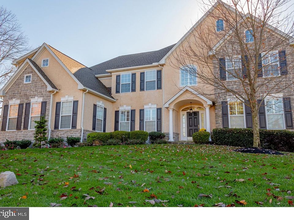 As you approach this immaculate two-story home, complete with custom hardscaping and intricate stonework, you know you're in for something special. Once you enter, the dramatic center hall features radiant hardwood floors that beckon you further inside and hint to what is to come. Architectural details adorn the large cherry kitchen, featuring stainless steel appliances, including a brand new built-in microwave and brand new refrigerator. The double wall oven, and large built-in range, coupled with the copious amount of glistening granite countertops, make this a chef's delight. The morning eat-in area features large windows and sliders to the rear maintenance-free deck, complete with built-in lighting, overlooking a large rear yard and babbling brook. The large family room features a beautiful marble gas fireplace as well as soaring cathedral ceilings with lots of windows, providing an abundance of natural light. French doors lead to the first-floor study, offering additional quiet space. The formal dining room and living room are perfectly sized, providing plenty of space to entertain and bring the finishing touch to the seamless flow of the first floor. Ascending to the second floor reveals a grand master suite with recessed lighting and a tray ceiling. Two walk-in closets, featuring "Closet By Design" systems provide plenty of organization. The master suite features a large soaking tub and tile stall shower, and two separate vanities. A second-floor laundry room and four additional bedrooms complete the second floor, two joined by a Jack-and-Jill bathroom. The huge 3-car garage features an epoxy floor and offers lots of storage options with the huge walk-out basement. The efficient two-zone HVAC system keeps this square footage economical. This house is in move-in condition for the discriminating home buyer, and is ready for you to call home now! Fantastic location! Award winning schools! 1 Year home warranty included for peace of mind. This is a must see home!