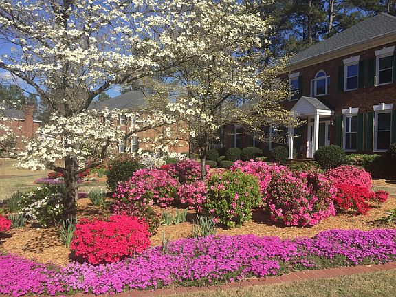 This stately 4 bedroom, 3.5 bath Northwood home is ideally located close to the many amenities of Evans—the performing arts center, the library, the Lady A Pavilion, parks, shopping, and more. The manicured landscaping and mature gardens on 0.9 acres are an oasis within a bustling community at your doorstep. If you have ever driven through Northwood at the peak of spring, you will have no doubt seen this two-story red brick home abundant with azaleas, dogwoods, and phlox in bloom. The home itself boasts a formal living and dining room, a remodeled kitchen with a breakfast nook overlooking the garden, a relaxing family room with gas fireplace, and a main-floor primary suite featuring a walk-in closet and a luxurious bathroom with shower and garden tub. Upstairs you will find a second suite with a walk-in closet and bathroom as well as two bedrooms and a third full bathroom. A large bonus room above the garage and generous storage areas complete the second floor. The living space extends outdoors with an ample screened-in porch that leads to a large patio for al fresco entertaining. The immaculate back yard features mature garden beds with attractive plantings year-round and a wooded area for privacy. A 2-car garage with built-in storage completes the package. Outside the home, enjoy Northwood's community pool and tennis courts. Don't miss your opportunity to preview this wonderful home; it won't last long!