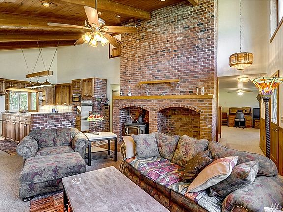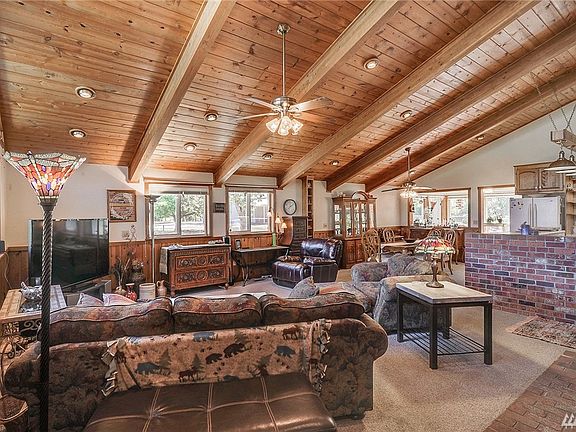 Magnificent property alert! 4 bdrm, 2.5 bath, 3292 sq ft home on 10 acres (two parcels) with riverfront at the back of the property. Property includes studio ADU w/ kitchenette, bathroom & wood stove. Detached Garage and Shop have 220v power and RV dump hookups. Interior features exposed pine vaulted ceiling in family room and kitchen. Spacious rooms! Sunroom off kitchen. Newer roof, new gutters, newer furnace, freshly painted this August. Back up generator wired in. So much to offer! MUST SEE!