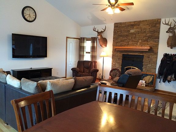 Modern style graces this eye-catching contemporary home that is perched above farm land with scenic outdoor views of the mountains. The array of windows, 9' ceiling & a fireplace lends space in the great room for gathering & entertaining with a retreat to the rear deck. Dual owners suites and laundry on Main with recreation room, 3rd bedroom suite, 2nd laundry, two bay garage, screened porch with hot tub on lower level. (2) additional (3) bay garages on property to store your toys or use as your man cave