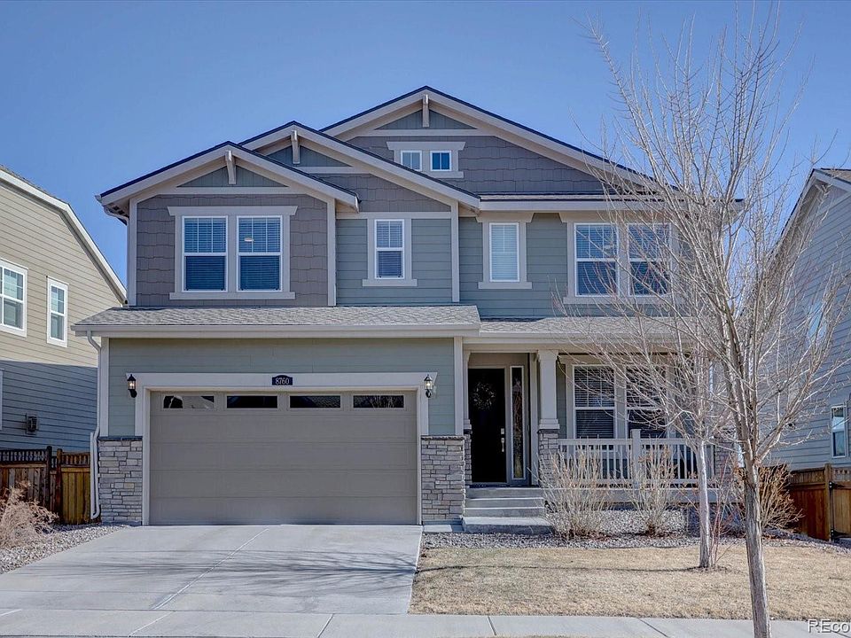 Welcome to this stunning 4-bedroom, 2.5-bathroom home in the highly sought-after Dove Village community in Parker! Designed for modern living, this home features a spacious, open layout that includes a main-floor study with French doors, perfect for working from home. The bright great room with cozy fireplace flows seamlessly into the chef’s kitchen, offering ample espresso cabinets, a double oven, stainless steel appliances, a large slab granite island, and a walk-in pantry. A convenient mudroom off the garage keeps things neat and organized, and the garage itself features an epoxy-finished floor, giving it a sleek look. The kitchen opens to a spacious dining area and covered maintenance-free deck, with views of the backyard, which backs to a greenbelt and walking path. It’s the ideal space for outdoor dining or relaxation. Upstairs, the master suite offers a 5-piece bath, complete with a soaking tub, and a walk-in closet. Three more generously-sized bedrooms and a full bath provide plenty of room for family and guests, and a large loft—ideal for a second living space, playroom, or home theater. Plus, an upstairs laundry room adds extra convenience. This home is packed with modern features like smart locks, a smart doorbell, Alexa integration, and more. Plus, it's safe and energy-efficient with a radon mitigation system and owned solar panels to reduce electricity costs. The large basement is already equipped with epoxy-finished floors, lighting, and HVAC, ready for your finishing touches. You'll also love the community amenities, including parks, playgrounds, and walking trails. This home truly offers the perfect mix of style, function, and comfort. Don’t miss the opportunity to make it yours today!