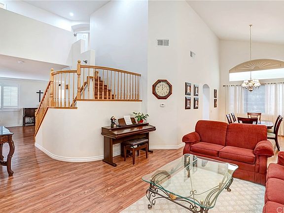 Wonderful home in the lovely Orange Crest community. This home features a newly updated kitchen with ample storage,stainless steel appliances except dishwasher, countertops are a beautiful quartz. Refrigerator stays with the sale. The formal dining room is large and can accommodate a large dining table. All 3 bedrooms are upstairs and are all a good size, all windows upstairs have plantation shutters and floors are carpeted upstairs with laminate flooring downstairs. The master bedroom can easily accommodate a king size bed, the master bathroom has a double sinks, separate tub and shower along with a walk in closet. Roof was replaced approx 10 yrs ago. One of the great features of this home is that there are no neighbors in the back.It backs up to a bird sanctuary that is protected so there will not be any homes built there in the future. The backyard is quite large with a covered patio and grassy area. This home is a must see!
