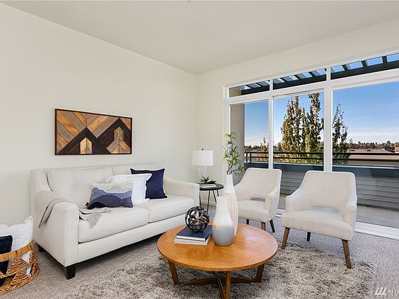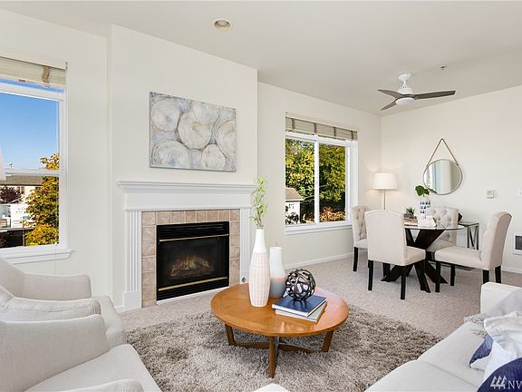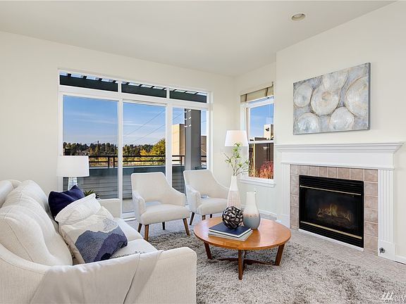Wonderful location steps to shopping and restaurants in the heart of Greenwood. Enjoy lots of natural light in this two bedroom, two bathroom NW facing top floor corner end unit. The open layout features a large living room with gas fireplace, dining area and a spacious kitchen. Extend your living space outside onto the private deck that's perfect for outdoor dining and watching sunsets with Olympic Mountain Views! Mins downtown Seattle.