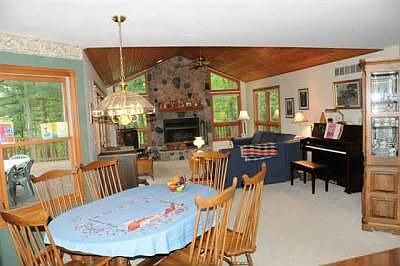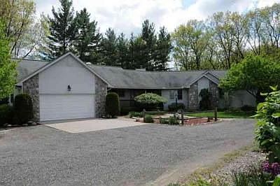 34 acre Country home, secluded tree lined drive, hiking trails, hunting, breathe taking views from wrap around deck. Large open kitchen w/ island, dining, built in desk, wall to wall cathedral windows, Formal dining area, living rm with wood fireplace, floor to cathedral ceiling windows, sliding doors to deck, Master suite features Jacuzzi tub, separate shower, sliding doors to deck, peaceful reading nook,Finished walk-out basement, family rm, game rm, gas fireplace, geothermal heat,unfinished basement storage area appox 1,010 sq ft