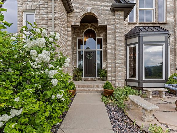 BACK ON MARKET!!! Welcome to 8760 Ridgepoint Dr., an exquisite residence nestled in the beautiful neighborhood of Hidden Point Estates in Castle Pines North. This stunning home offers an unparalleled blend of luxury, comfort, and style, situated on a picturesque lot with meticulously maintained mature landscaping. As you approach the home, you are greeted by an elegant front entry featuring a serene water fountain, setting the tone for the tranquility and beauty that lies within. Step inside to discover an expansive and inviting open floor plan, accentuated by a grand staircase that adds a touch of sophistication and architectural interest to the home. This luxurious property boasts six spacious bedrooms and five well-appointed bathrooms, providing ample space for family and guests. The main floor includes a primary suite, a true sanctuary with a spa-like bathroom and two generous closets. The primary suite offers direct access to the breathtaking backyard, where you can unwind amidst the lush landscaping and tranquil water feature. The heart of the home is the beautiful lofted kitchen, designed with both style and functionality in mind. It features high-end appliances, custom cabinetry, and a large island perfect for casual dining or entertaining. The open floor plan seamlessly connects the kitchen to the spacious living and dining areas, creating a perfect flow for entertaining including a wet bar in the great room. Step outside to the backyard oasis, where a charming pergola provides a shaded retreat for outdoor relaxation. Gather around the built-in fire pit on cool evenings, or simply enjoy the peaceful ambiance surrounded by the mature lush landscaping. 8760 Ridgepoint Dr. offers a rare opportunity to own a home that embodies elegance, comfort, and luxury in one of Castle Pines North's most desirable neighborhoods. Schedule your private tour today, Don't miss your chance to experience the exquisite lifestyle that awaits you in Hidden Point Estates.