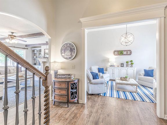 Stunning, one-of-a-kind home with high end finishes throughout. Rich hardwoods, neutral interior paint & plantation shutters throughout. Stunning kitchen w/granite counters, beautiful built-ins and natural lighting. 2 bedrooms down including master with private back patio access, flex room, formal dining, open plan on main floor is perfect for entertaining. Other 4 bedrooms up including game room.. Prime location, Bixby schools.