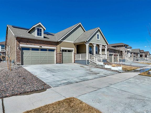 Beautiful high demand open Hepburn Ranch plan by Lennar in this 55+ community featuring the latest in energy efficiency and state of the art technology, 3 beds, 3 baths, large great, room, large kitchen & huge full unfinished basement for future expansion, 3 car oversized garage, large covered deck and more! This gorgeous home has a private guest suite with full bath that will impress any visitor. Beautiful finishes and upgrades including an extended deck, white cabinetry, slab quartz counters, upgraded flooring & tile and more. The Hilltop club offers a state-of-the-art fitness center, yoga studio, demonstration kitchen, workshop/library, resort style outdoor pool and hot tub, firepit, tennis and pickleball & bocce courts. Conveniently located close to shopping, dining, entertainment, and more - amenities abound. Easy commute to Downtown Denver, Lonetree, Centennial, the DTC and beyond.