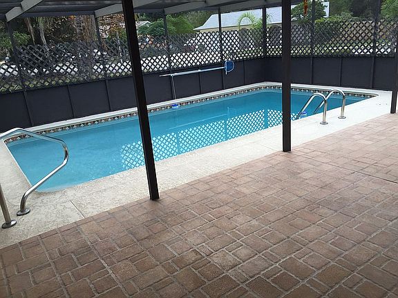 A very unique 10 room home featuring 4 bed rooms. Kitchen updated with most new appliances. 2 updated bathrooms. All appliances stay. New a/c, solar electric, hot water and pool heater! Mostly new laminate flooring. Enjoy 2 drive ways..House is in a quiet cul-de-sac & the 2nd. circular driveway is in the rear of the house. House is not in Flood Zone!! Solar heated updated Pool with a spacious lanai. Well water (no rust) for sprinkler and the manifold re-built 2020. Beautifully landscaped and freshly painted exterior and interior. The fourth bedroom is every man's dream MAN CAVE or it can be used as a 4th. bedroom or a Mother & Daughter with a separate entrance . Great income potential ..There is a 2 car garage with hurricane door. This home is maintenance free and is just minutes away from all major stores, mall and restaurants. solar electric panels are new, new high efficiency a/c installed, newly painted exterior, renovated irrigation system, pool cage re-screened! New ATTIC AND WALL INSULATION WITH SOLAR POWERED VENTILATION!