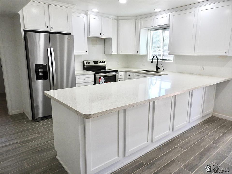 Experience amazing country living nestled within the city limits in this acreage home. Fully interior remodeled, new flooring, brand new kitchen cabinets/countertops and complete new bathrooms, including cabinetry and tiled showers! Boasting 3 large bedrooms & 3 bath and a very spacious open floor plan w two living rooms, with ample comfort. Adorned with 25 date trees and diverse citrus trees! Ready to have some animals? Make this home a self-sustaining ranch. Enjoy over one acre of land with irrigation
