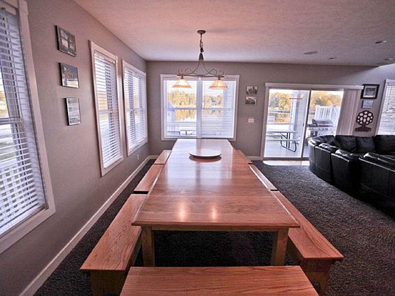 Lakefront All Levels. 8+ bedrooms Fully Furnished Waterfront home for rent. Swim Spa, Hot Tub, Steam Shower, Large kitchen, Lower Level Mother in Law apartment fully furnished. Pool table, game room, near basketball court, playground on a cul-de-sac. Great fishing, all sports lake. Owner pays for trash and water utility. Will pay half of has and electric. House is furnished
