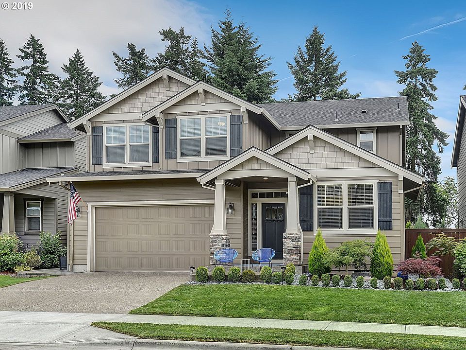 Meticulously Maintained 5bed/3bed Craftsman that is gorgeous! Open Concept with vaulted ceilings, lots of light, gas fireplace, large kitchen with granite, island, pantry and a view to the outside entertaining area. Relax in the backyard rain or shine with a covered, heated, gas hook up, speakers, bistro lighted patio. Enjoy the water feature and glass gas fire pit backing to green space with privacy shrubs and fully fenced. Don't Miss!