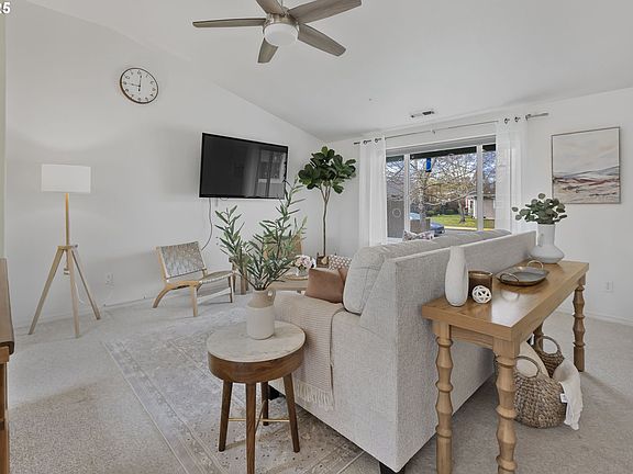 Welcome home! This delightful 3-bedroom, 2-bathroom home is perfect for those looking for a single level home in the beautiful Veneta area. The open-concept layout invites natural light into every room, creating a warm and welcoming atmosphere. The kitchen is equipped with stainless steel appliances. Washer and dryer are included for added convenience. Newer metal roof, solar panels & heat pump. Enjoy the outdoors on your covered deck or in your fully fenced yard. RV parking is available, making it easy to store your recreational vehicle when not in use. With its charming features and prime location, this home is a perfect fit for first-time homebuyers or anyone seeking a cozy, low-maintenance property. Don’t miss the opportunity to make this your home sweet home, schedule a tour today!