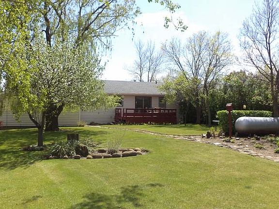 Enjoy small town living at it's finest! This immaculate UPDATED 4Bed/2Bath RANCH home on corner lot is a pleasure to view. The private backyard offers full grown evergreens, white flowering crab, producing apple tree & lilac bushes. Enjoy the view from the spacious 12 x 18 deck. Kitchen is a delight w/NEW Hi-Def countertops, NEW Microwave,& NEW wood laminate thru out dining area. NEW granite type sink & faucets. Updated cupboards.SO MANY IMPROVEMENTS! SHINGLES-2005,VINYL SIDING-2006,WINDOWS-2005,HOT WATER HEATER-2006. New toilet. ORIGINAL HARDWOOD FLOORS thru out most of main floor under the carpet. Entry way breezeway is an added plus. NEW exterior carpet on breezeway & front entry. Insulated & finished 2 car garage w/ shelves & cabinets. Back door access to yard. Also a WELL & pump for yard watering. Great quiet neighborhood. Priced very well for this perfect opportunity to call this your next home! Propane tank included. Family owned for many years. A pleasure to view today!