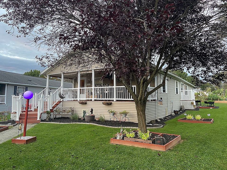 This is truly a unique opportunity – it’s BIG, it’s BOLD, and it has just about every extra available. Over 2100 square feet, 3 bedrooms, 2 full bathrooms, living room, family room, dining room, and laundry room, make this spacious residence fit for any family. The current owners have customized both the inside and outside of this residence and created a true dream home. This Skyline Birchfield model home has a 5/12 pitch roof, architectural shingles, vinyl railings, paver driveway that can accommodate 3 cars, paver walkway, the most amazing landscaping and raised vegetable gardens, 3 storage sheds (2 of them with electric service), paver patio, and garden pond, all on a very large lot with common grounds behind it. Step inside and be wowed by all the living space! Every room is beautifully painted and decorated and has been well maintained by the homeowners. You will find things like a 100% drywalled interior, perimeter heating/cooling vents, vinyl tilt-in windows, upgraded kitchen cabinets and a walk-in pantry, laundry room with exterior door, updated sinks, faucets, fixtures, and more. The master suite is situated at the back of the home for privacy. It features a walk-in closet with custom storage racks and a renovated bathroom with a high end walk-in shower. The current homeowner has put his skills as an IT manager to good use, and has everything wired in and controllable from a smart phone. Control your heating, cooling, and lighting from anywhere. A tutorial will be offered for the new owner so they can take advantage these special features. Now for some important details – this home is located in Green Acres in the award winning Parkland School District. It comes with the following appliances – a $3500 Samsung washer/dryer set, range, microwave, and dishwasher. It has Central AC and electric forced air heating. Total yearly taxes are about $1150 with the Homestead Discount. Lot rent in Green Acre is $861/month and includes water, sewer, and trash pickup, plus lots of amenities like a pool, clubhouse, tennis, volleyball, basketball courts, and playgrounds. This location is very convenient to many industrial jobs in the Breinigsville/Macungie/Trexlertown area. Located approximately 5 minutes from Interstate 78.