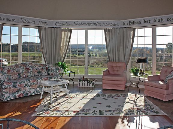 PRICE REDUCED ! Exquisitely Built, customized 2003 Hillside ranch with 21 Acres. Property boasts 6 bedrooms, 3 baths, 3.5 car garage, gourmet country kitchen with morning room, gorgeous cherry hardwood floors throughout, sprawling wrap around porch overlooking private pond, Large study, living room with fireplace, central air, complete with generator backup. Come see the breathtaking views of this palatial estate. This would be a fabulous bed and breakfast! 5 miles from Kissing Bridge!