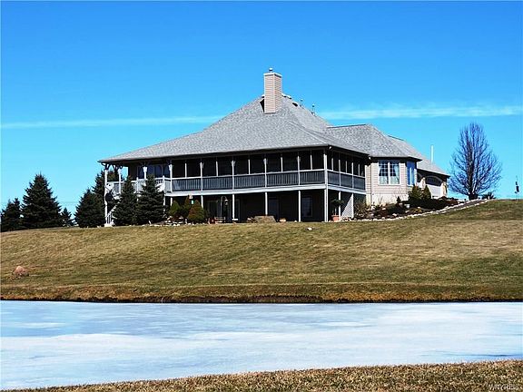 Looking for New Build, Modern, Larger home in the country with Curb Appeal, Acreage, Water, Woods and Privacy? This Artistically designed Hillside Ranch w/Mysterious First Impression overlooks almost 21 acres, the Pond and Woods and has views from every window. Sited almost in the middle of the Lot this 4+ bedroom home features Brazilian Cherry Floors, Solid Maple Cabinets, Half-Hex Sitting room with vaulted Trey Ceiling, Formal Dining, Vaulted Great room, First Floor Master Bedroom Suite, Office/Study and 3 additional Bedrooms. Wrap around Screened deck overlooks a pristine and rolling panorama with walking trails and Hardwoods. With so many amenities and features, words can't completely describe it in this space. Strategic location is minutes to Interstate 219 and convenient to schools, shopping, recreation areas and Greater Buffalo! You will tap the brakes-make the appointment today!